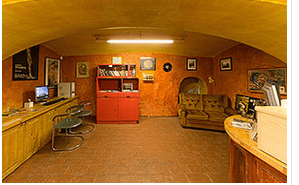 V přízemí domu Travel Hostel Český Krumlov je příjemná restaurace s krbem a venkovním posezením a výborným českým pivem.