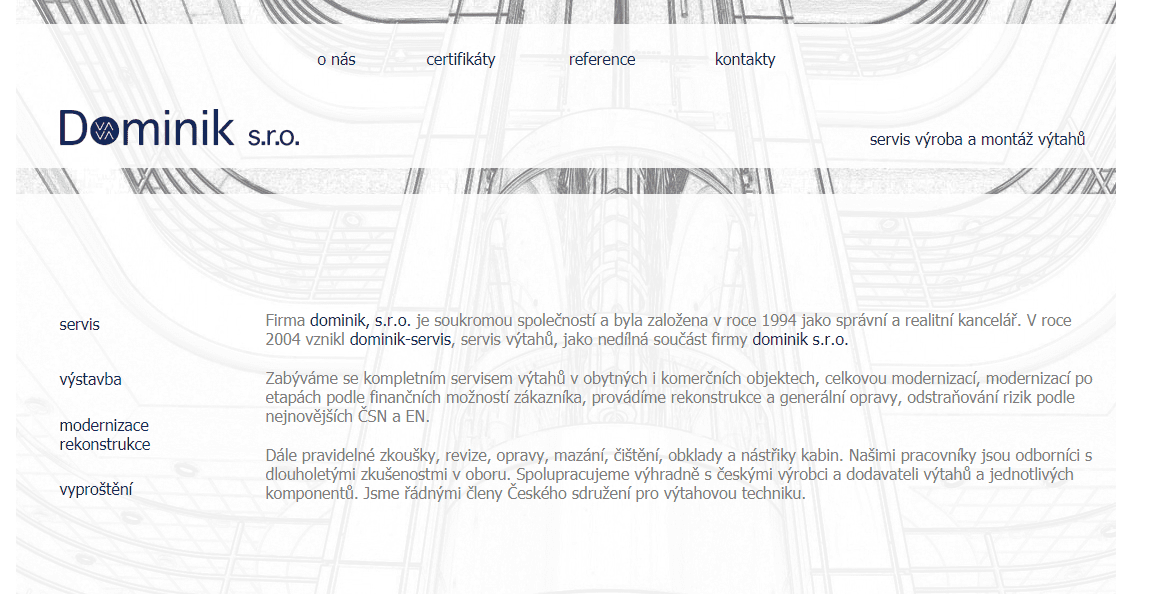 DOMINIK s.r.o. - Servis, výroba a montáž výtahů